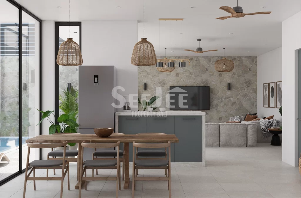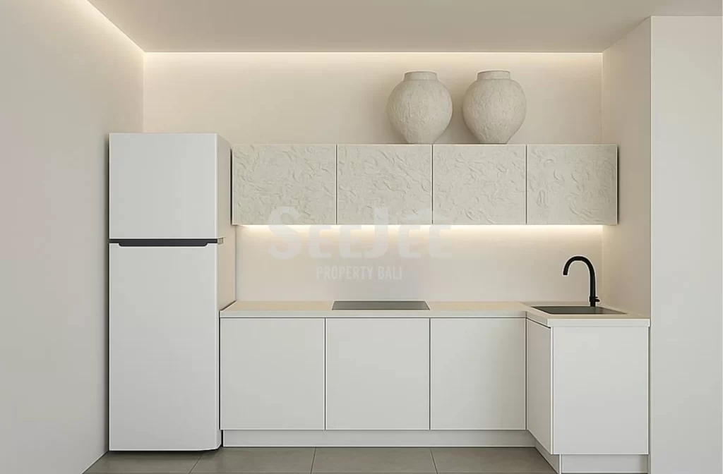 Outside, the villa reveals its most intimate moments—a sunlit pool area framed by clean walls and tropical greenery, where days pass slowly between dips in the water and quiet lounging under the sky. Set within an exclusive collection of just four villas in a secure and thoughtfully designed environment, this home offers both privacy and a sense of belonging in one of Jimbaran’s most promising areas.